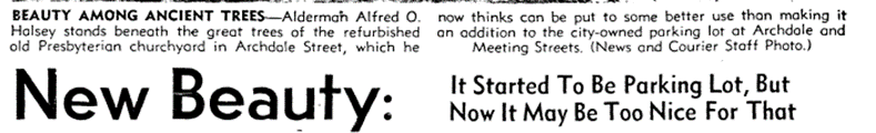 “…Mr. Halsey’s statements will doubtless be welcomed by numerous citizens of Charleston, some of whom objected vehemently when it became known that the ancient cemetery would become an addition to the parking lot.